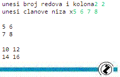 109.1.. Učitati dvodimenzionalni niz i formirati drugi čiji je opšti član: yi,j = 2xi,j (dvostruka vrijednost člana niza). Ispisati oba niza.