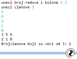 130.Učitati dvodimenzionalni niz - matricu nxm. Prebrojati i ispisati koliko ima elemenata većih od 3.