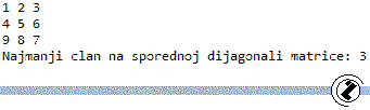 System.out.println("Najmanji clan na sporednoj dijagonali matrice: " + min);