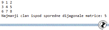 System.out.println("Najmanji clan ispod sporedne dijagonale matrice: " + min);
