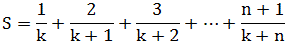 s = s + (i+1)/(double)(k+i); // s+=(i+1)/(double)(k+i);
