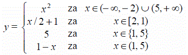 Sa tastature se x sa tastature računa vrijednost funkcije y = f(x) zadane formulom  |