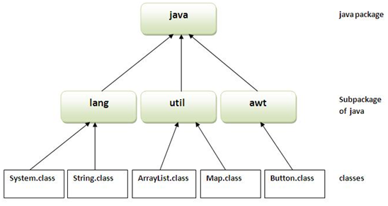 Pogledajmo primjer, Sun Microsystem je definisao paket pod imenom java koji sadrži mnoge klase kao što su System, String, Reader, Writer, Socket itd. Ove klase predstavljaju određenu grupu napr. Reader i Writer klase služe za ulazno/izlazne operacije, Socket i ServerSocket klase su za umrežavanje itd. Tako, Sun je podkategorizovao java paket u podpakete kao što su lang, net, io itd. i stavio klase koje se odnose na ulaz/izlaz u io paket, Server i ServerSocket klase u net pakete itd.