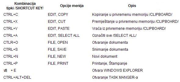 Tipka prečice /SHORTCUT KEY/ za kopiranje