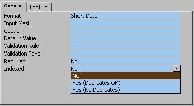 u Field Properties pojedinog polja u Design View-u tabele (vidi sliku). Indexi