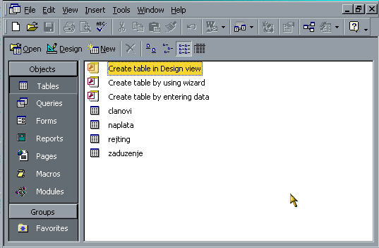 1.Queries 2.članovi Query (upit koji želimo koristiti) 3.Open 4.Izlazak 5.Kraj |