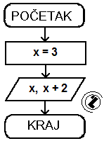 6.3.. Varijabla x u programu ima vrijednost 3 (konstanta). Ispisati na ekran vrijednost varijable x i uveĉanu vrijednost x za 2.