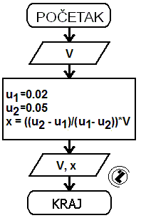 - ulaz - učitati: "Zapremina smjese udjela 2% je (u odgovarajucoj jedinici) "; V