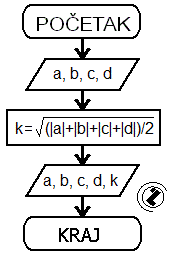 (|a|+|b|+|c|+|d|)/2 - kvadratni korijen aritmetičke sredine njihovih apsolutnih vrijednosti.