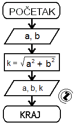 tako da je apsolutna vrijednost kvadrata broja isto što i kvadrat broja. Te se zadatak svodi na izračunavaje korijena sume kvadrata dva broja s = √ (a2 + b2). Program izvodi učitavanje dva broja i računa kvadratni korijen sume kvadrata ova dva broja s = √ (a2 + b2).