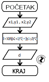 - ulaz - učitati: "Koordinate za tacku M1:", x1,y1