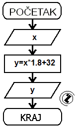 - izlaz - ispisati: "Temperatura u Farenhajtima:"; y