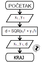 Opis rješenja: Na osnovu Pitagorine teoreme hipotenuza se računa d 2 = x12 + y12.