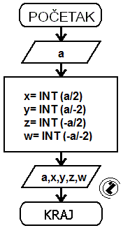 6.4.. Napisati program za izracunavanje: INT (a/2), INT (a/-2), INT (-a/2), INT (-a/-2), odnosno za izračunavanje: a DIV 2, a DIV -2, -a DIV 2, -a DIV -2