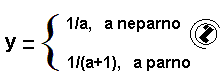 Istinit /TRUE/: y = 1 / (a + 1)
