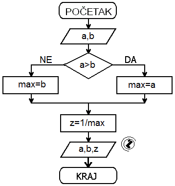- Izlaz: "Reciprocna vrijednost veceg je:"; z
