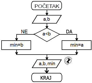 7.2.. Od dva učitana broja (a, b) sa tastature naći manji min(a, b).