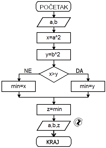 7.2.. Za učitane a i b izračunati z prema izrazu z = min(a2, b2).