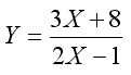 Istinit /TRUE/: y = (3 * x + 8) / (2 * x - 1), Izlaz: x, y