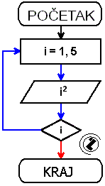 - za i = 1 do 5 radi