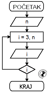 8.1.. Ispisati prirodne brojeve od 3 do n.