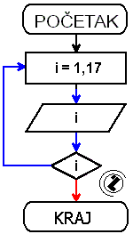 - uvećaj vrijednost kontrolne promjenljive (i=i+1)