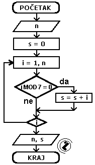 ako je i djeljivo 7 tada formirati novu sumu (s=s+i)