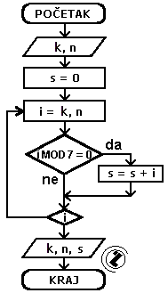 ako je i djeljivo 7 tada formirati novu sumu (s=s+i)