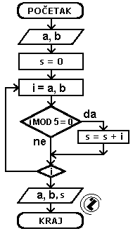 8.1.. Naći sumu brojeva u intervalu od a do b djeljivih sa 5.