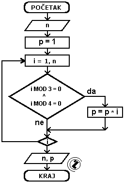 ako je i djeljivo 3 i sa 4 tada formirati novi proizovd (p=p*i)