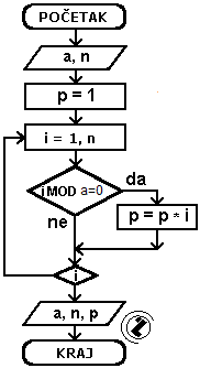 ako je i djeljivo sa a tada formirati novi proizovd (p=p*i)