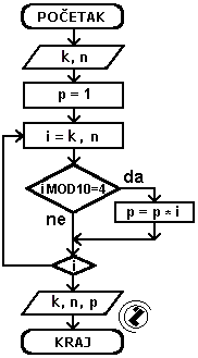 8.1.. Naći proizvod prirodnih brojeva u intervalu od k do n čija je cifra jedinica 4.