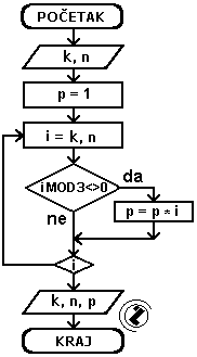 8.1.. Izračunati proizvod prirodnih brojeva u intervalu od k do n koji nisu djeljivi sa 3.