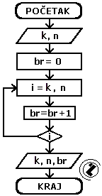 8.1.. Napisati program za prebrojavanje prirodnih brojeva od k do n.