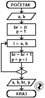- ispisati granice (a, b), vrijednost brojača (br) i vrijednost proizvoda (p)