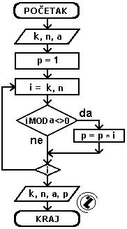 8.1.. Izračunati proizvod brojeva od k do n koji nisu djeljivi sa a.