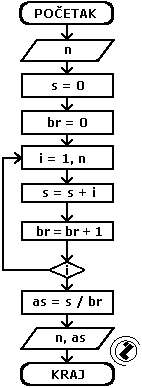 - ispisati granicu (n) i izračunatu vrijednosti aritmetičke sredine (as)