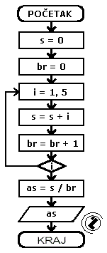 - ispisati izračunatu vrijednosti aritmetičke sredine (as)