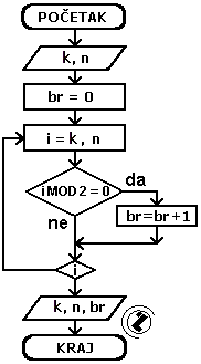 ako je i djeljivo sa 2 tada uvečati vrijednost brojača (br=br+1)