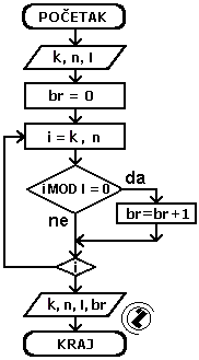 ako je i djeljivo sa l tada uvečati vrijednost brojača (br=br+1)