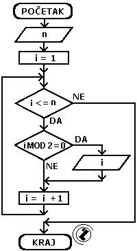 - dok je i manje ili jednako n (i <= n) pređi na slijedeće korake; inače idi na nastavak programa (korak 7)
