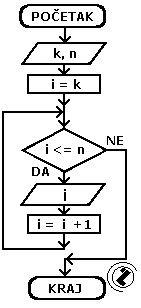 - uvećaj vrijednost kontrolne promjenljive (i=i+1)