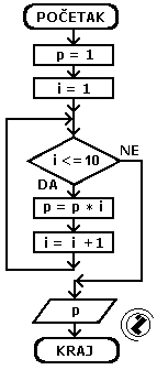 - dok je i manje ili jednako 10 (i <= 10) pređi na slijedeće korake; inače idi na nastavak programa (korak 7)