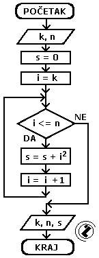 8.2.. Izračunati i ispisati sumu kvadrata prirodnih brojeva od k do n.