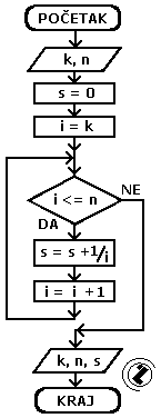 8.2.. Izračunati i ispisati sumu recipročnih vrijednosti prirodnih brojeva od k do n.