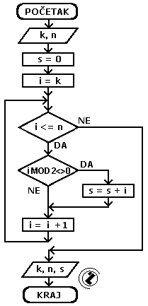 8.2.. Suma neparnih prirodnih brojeva od k do n.
