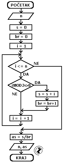 8.2.. Aritmetička sredina neparnih prirodnih brojeva od 1 do n.
