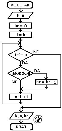 8.2.. Napisati program za prebrojavanje neparnih brojeva od k do n.