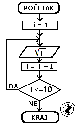 - uvećaj vrijednost kontrolne promjenljive (i=i+1)