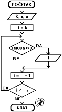 8.3.. Ispis prirodnih brojeva od k do n koji nisu djeljivi sa a.
